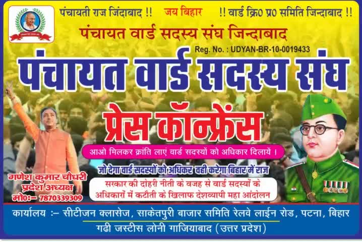 वार्ड सदस्यों की मान सम्मान अधिकार दिलाने के लिए आर पार की लड़ाई लड़ने को तैयार हैं वार्ड सदस्य संपर्क नंबर 7870 3393 09