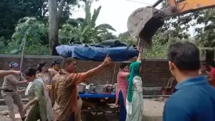ऋषिकेश एम्स रोड पर जीरो जोन खाली करवाने पहुंची पुलिसफोर्स ने बड़ी मुश्किल से जीरो जोन खाली करवाया।