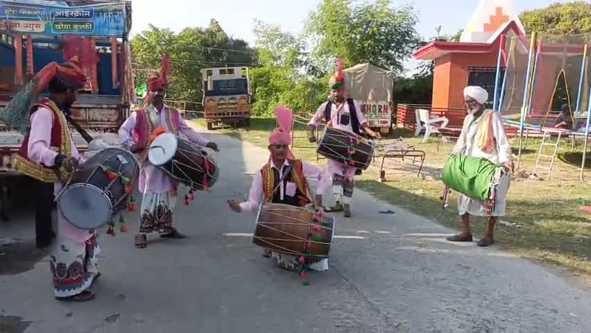 हरोली: भदौड़ी के प्रसिद्ध दंगल के दोहरान ढोल नगाड़ों के साथ दंगल मैदान की ओर जाते हुये चुने हुये पंचायत प्रतिनिधि ब ग्रामीण