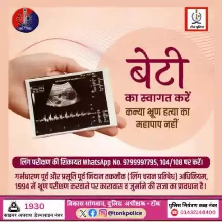 लिंग परीक्षण की शिकायत WhatsApp No. 9799997795, 104/108 पर करें। #SaveGirlChild