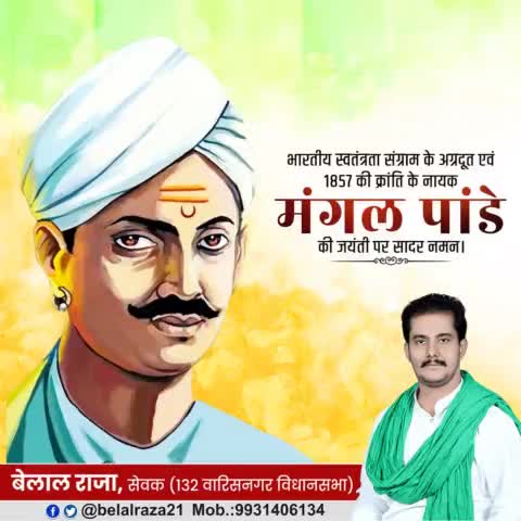 अंग्रेजी हुकूमत को चुनौती देने वाले, 1857 के प्रथम स्वतंत्रता संग्राम के महानायक अमर शहीद मंगल पांडे जी की जयंती पर सादर नमन।