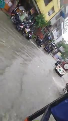 आज मीरगंज में हुई झमाझम बारिश जिसकी वजह से सड़कें हुई बदहाल कई जगह है गाड़ियों के टायर नहीं दिख रहे थे पानी में