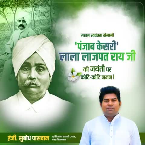 *अपने प्राणों की आहुति देकर सम्पूर्ण भारत में राष्ट्रवाद की भावना को जागृत कर, स्वतंत्रता की अलख जगाने वाले "पंजाब केसरी" लाला लाजपत राय जी की जयंती पर उन्हें शत्-शत् नमन।*🙏🏻💐