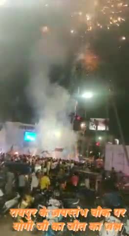 रायपुर: रायपुर के जयस्तंभ चौक में आतिशबाजी के साथ उत्तरप्रदेश में पुनः #योगी जी के सरकार बनने पर जीत का जश्न मनाया गया