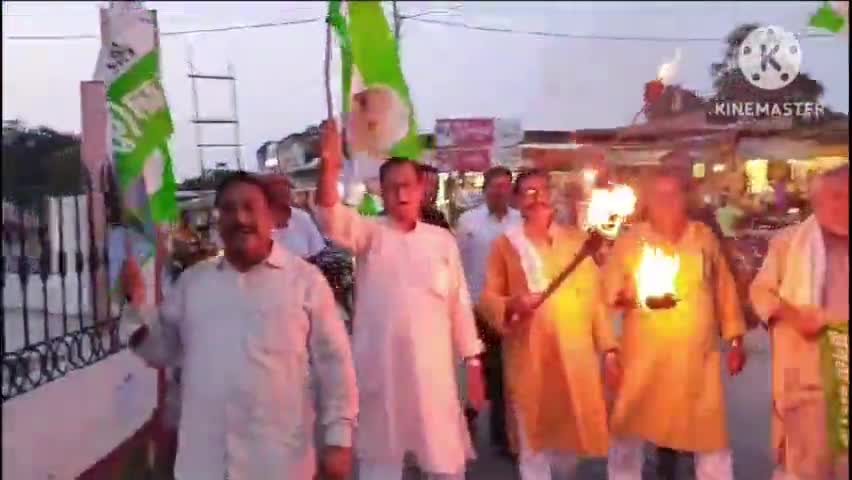 जलालपुर: जलालपुर में जदयू कार्यकताओ ने भाजपा के खिलाफ निकाला मशाल जुलूस।