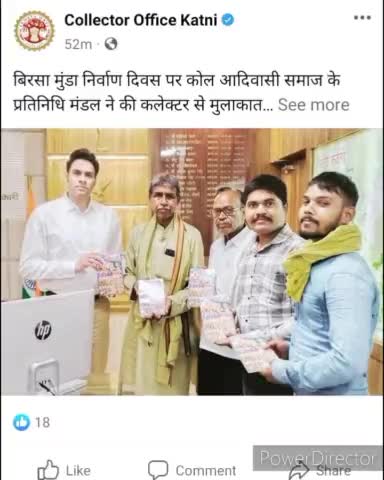कटनी नगर: कोल आदिवासियों के द्वारा बिरसा मुंडा बलिदान दिवस पर मा. कलेक्टर कटनी को किताब भेंट करी गई