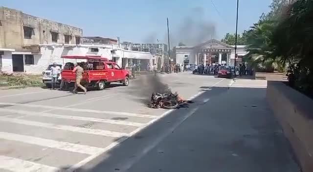 आज़मगढ़ कलेक्ट्रेट के सामने आग का गोला बनी बाइक, आज सुबह ही तकरीबन 11 बजे कलेक्ट्रेट के सामने खड़ी बाइक में अचानक से आग लग.