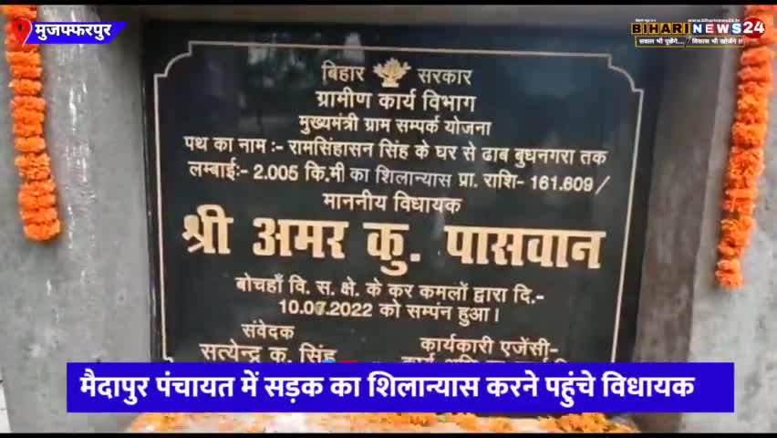 मैदापुर के हर सड़क होगी बेहतर सड़क, बोचहां विधायक ने मैदापुर पंचायत में किया सड़क का शिलान्याश