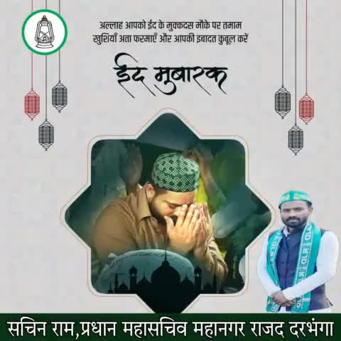 समस्त प्रदेशवासियों को ईद की दिली मुबारकबाद सचिन राम, प्रधान महासचिव महानगर राजद दरभंगा। R.J.D - राष्ट्रीय जनता दल