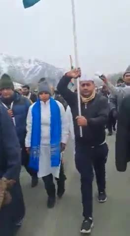 पद यात्रा काश्मीर पुलगावा में राष्ट्रीय ध्वज के साथ ।