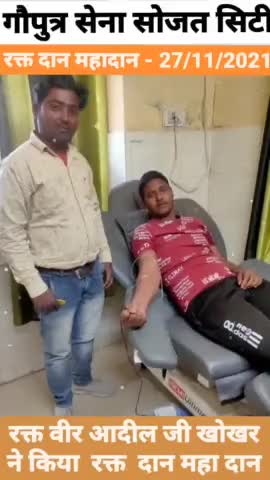 #रक्तवीर_खोखर_जी_आदील_ने_किया_3_बार_रक्त_दान_व्यवस्था_सहयौगी_गौपुत्र_सेना_सोजत_नर्सिह_पुरा_टीम_चद्रप्रकाश_जी_तवर_बबलु_जी