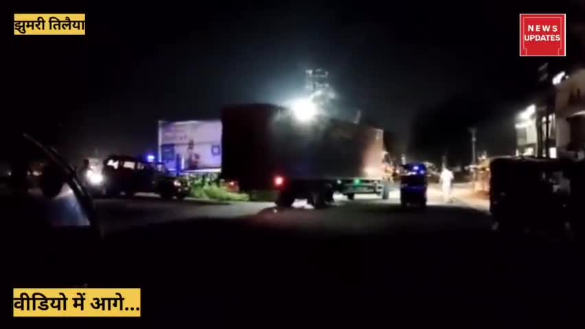झुमरी तिलैया के सुभाष चौक पर कार और ट्रक में हुई टक्कर बाल बाल बच्चे कार पर सवार लोग।