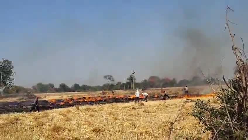 पलेरा : ग्राम बन्ने बुजुर्ग में किसान के खेत में रखी कटी फसल में लगी आग, करीबन 2 एकड़ की फसल जलकर हुई खाक,