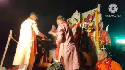 घंसौर नगर में मां दुर्गा की जलविहार यात्रा, बड़ी धूमधाम के साथ संपन्न हुई घंसौर नगर में विगत नौ दिनों से मां दुर्गा की पूजा अर्चना व धार्मिक अनुष्ठान संपन्न हो रहे थे गुरुवार को घंसौर में मूर्ति का विधि विधान से जलविहार किया गया जलविहार यात्रा के दौरान भक्तों ने भक्ति भाव और उत्साह के रंग में डूबे नजर आए एक दूसरों को गुलाल लगाया और भजनों की धुन में झूमते हुए