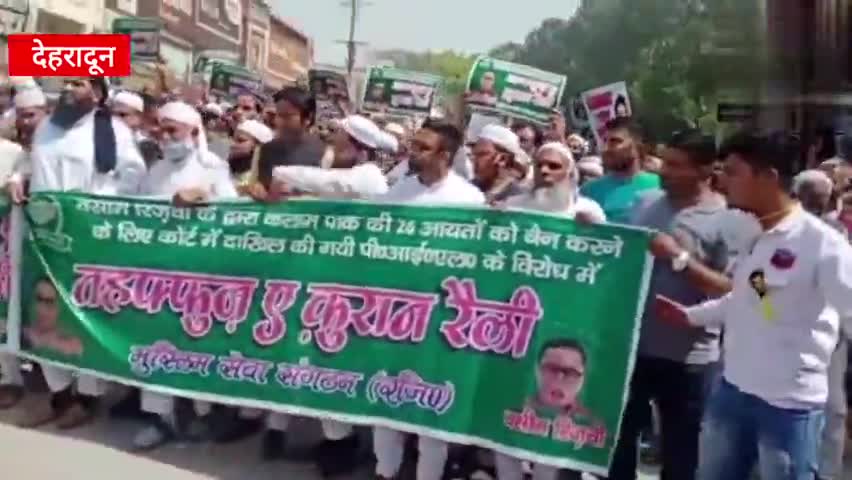 देहरादून: कुरआन के नुक्ते से भी छेड़छाड़ बर्दाश नही वसीम रिजवी के खिलाफ़ मुस्लिम सेवा संघठन ने गांधी पार्क से कचहरी तक निकाली रैली
