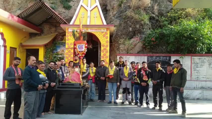 कुनिहार: कुम्हाली से दियोटसिद्ध बाबा बालक नाथ की यात्रा के लिए रवाना हुआ पैदल यात्रियों का जत्था