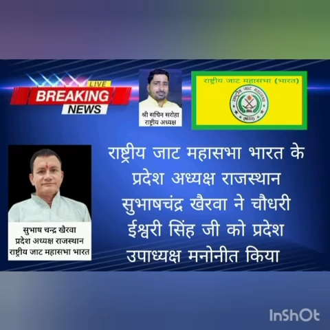 RJMB state president subhash chandra khairwa nominated ishwari singh as state vice president rajasthan
