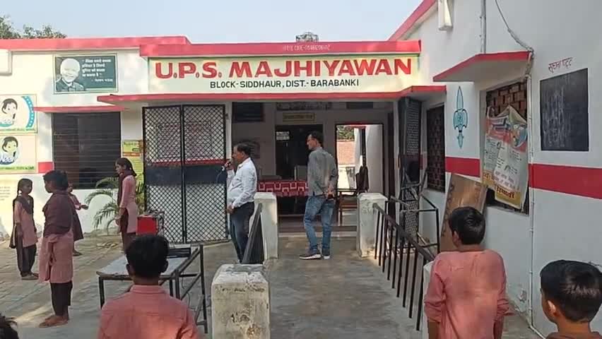 उ प्रा वि मझियावां सिद्धौर बाराबंकी पी टी करते हुए छात्र छात्राएं।