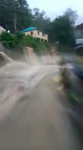 मूसलाधार भारी बारिश के बाद सरकाघाट बस स्टैंड के पास खड्ड की तरह प्रतीत होता हुआ।