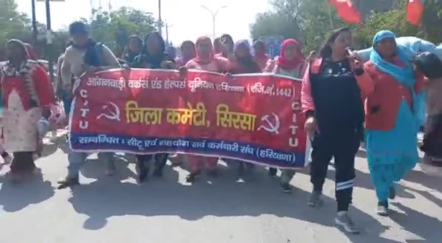 सिरसा: आंगनबाड़ी वर्करों ने बरनाला रोड स्थित सांसद सुनीता दुग्गल के घर के बाहर किया प्रदर्शन, लगा जाम