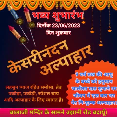 अपने नगर बदायुँ में एक अच्छी पहल लवलेश साहू जी द्वारा की जा रही है। अतः आप सभी केसरीनंदन अल्पाहार आएं। और संस्कार सहित अल्पाहार का आनन्द ले।