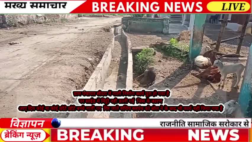 ग्राम पंचायत सीदप में नाली निर्माण कार्य पूरा हो गया है पर साईड में मिट्टी नही डाली गई है जिस कारण आए दिन कोई ना कोई