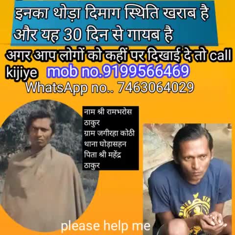 गुमसुदा व्यक्ति की तलाश आप सभी को अगर ये व्यक्ति मिले तो दिये गये नम्बर पर कॉल करें।