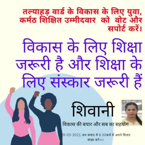 28 तारीख को सायं 8.30 बजे फेसबुक पर जन संवाद में विकास की चर्चा करते हैं । https://m.facebook.com/shivanichandel.mandi