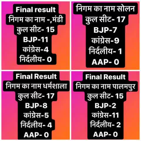 चारो नगर निगम के परिणाम देखे