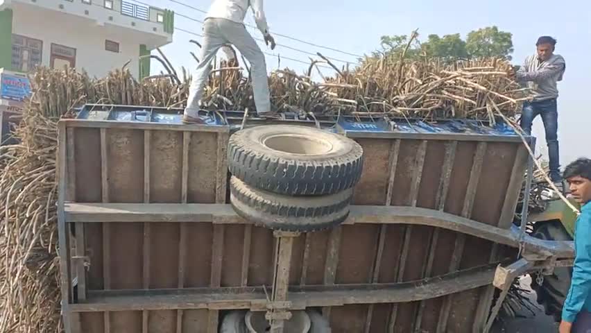 बदायूं गुन्नौर हाईवे पर गन्ने से भरी ट्रैक्टर ट्राली पलटी, बड़ा हादसा होने से बचा, घटना गुन्नौर पेट्रोल पंप के पास की है