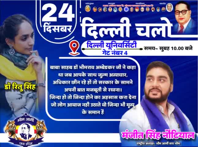बाबा साहब डॉ भीमराव अम्बेडकर ने कहा था मैने ये आधिकार अपको बेहद मुसीबते झेल कर दिए हैं। अपको इनको बचाने के लिए घर से निकलकर आंदोलन में भागीदार बनना पड़ेगा। जिन्दा हो तो जिन्दा होने का अहसास जरूर कराना गूंगे लोग मृत्यु के समान होते हैं।