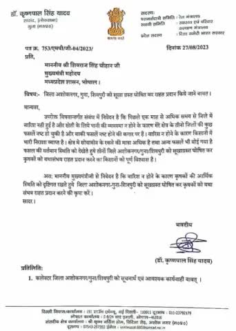 किसान पुत्र #लोकप्रिय_सांसद_डॉ_केपी_यादव_जी ने गुना लोकसभा क्षेत्र को सूखा ग्रस्त घोषित करने के लिए माननीय मुख्यमंत्री श्री शिवराज सिंह चौहान जी से पत्र द्वारा मांग की बहुत-बहुत धन्यवाद माननीय सांसद जी