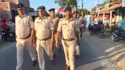 घैलाढ बाजार में दशहरा मेला तथा प्रतिमा विसर्जन के दौरान शांति सुरक्षा और विधि व्यवस्था को बेहतर बनाने के उद्देश्य पुलिस प्रशासन की ओर से शनिवार के 3:00 बजे दिन में फ्लैग मार्च निकाला गया फ्लैग मार्च का नेतृत्व थाना अध्यक्ष ज्योतिष कुमार ने किया फ्लेग मार्च बाजार के मेला ग्राउंड से गुजर कर मुख्य चौक चौराहे होकर एसबीआई बैंक के पास समाप्त हो गया