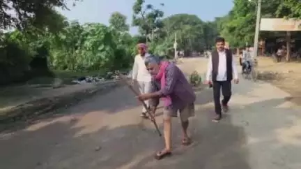 गाजीपुर में आज सड़कों की हालत ने सामाजिक कार्यकर्ताओं को सड़क पर उतरने पर मजबूर कर दिया। लेकिन इस बार विरोध का तरीका थोड़ा हटकर रहा। यहां सड़क के गड्ढों को नापने के लिए कोई सरकारी सर्वे टीम नहीं, बल्कि लट्ठा मैदान में उतरा गया। जी हां समग्र विकास इंडिया के राष्ट्रीय अध्यक्ष ब्रज भूषण दूबे ने पीजी कॉलेज से लेकर आदर्श गांव बाजार तक करीब 4 किलोमीटर सड़क नापा।