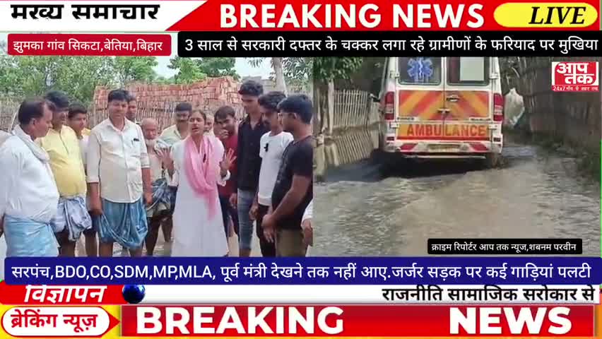 सिकटा के झुमका गांव में पिछले तीन सालों में नाली और सड़क नहीं बनी जिससे जलभराव के कारण कई लोग बीमार हो गए हैं,
