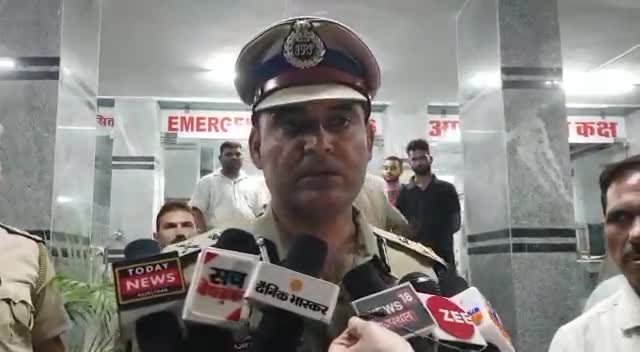 बड़गांव: उदयपुर के एमबी अस्पताल में घायल पुलिसकर्मियों से मिलने के बाद प्रतिक्रिया देते रेंज आईजी ए पी लांबा