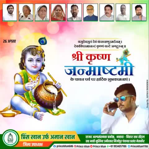 राधा की कृपा, श्याम का प्यार, बधाई हो आपको जन्माष्टमी का त्योहार।” कृष्ण जन्माष्टमी की हार्दिक शुभकामनाएं🙏🙏