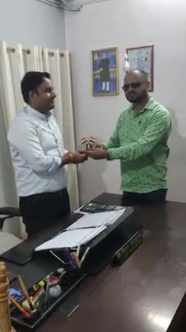 कोंच प्रखण्ड कार्यालय में BDO को प्रखण्ड प्रतिद्वंदी मुखिया संघ के अध्यक्ष शम्भु नाथ यादव ने तिरंगा झंडा किया भेंट