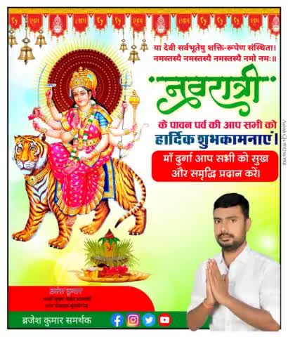 माँ दुर्गा की उपासना के महापर्व नवरात्रि स्थापना के पावन अवसर पर समस्त देश एवं प्रदेशवासियों को हार्दिक शुभकामनाएं। मातारानी की कृपा एवं आशीर्वाद सदैव आप सभी पर बना रहे, ऐसी मेरी कामना है।💐