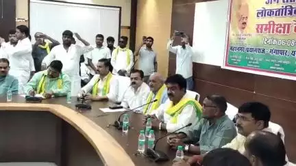 प्रयागराज:सर्किट हाउस में जनसत्ता दल की समीक्षा बैठक में बोलते एमएलसी गोपालजी तथा प्रतापगढ़ के अन्य पदाधिकारी & जिलाध्यक्ष दिनेश तिवारी उपस्थित रहे।