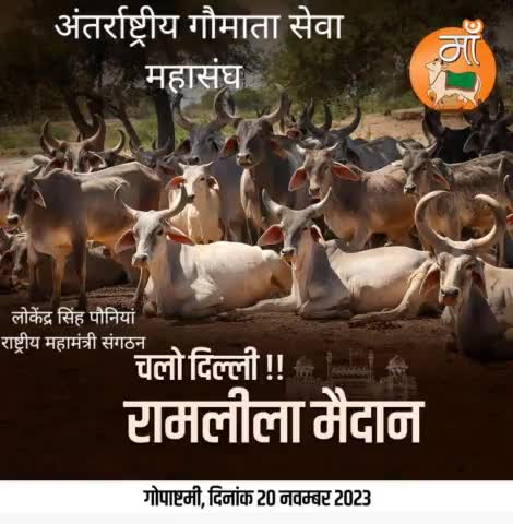 गौमाता राष्ट्रमाता ।। निवेदक । अंतर्राष्ट्रीय गौ माता सेवा महासंघ 20 नवंबर गोपाष्टमी निकट है, समस्त सनातनियों से निवेदन है कि वे अपनी अपनी तैयारियां करके रामलीला मैदान दिल्ली में गौमाता के सम्मान की स्थापना के हेतु एकत्रित होना सुनिश्चित