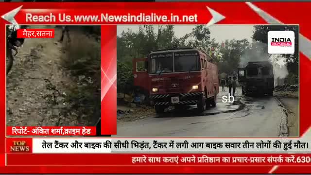 तेल टैंकर और बाइक की सीधी भिड़ंत, टैंकर में लगी आग बाइक सवार तीन लोगों की हुई मौत।@#