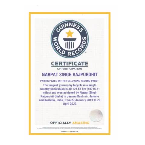 guinness world records holder Narpat Singh Rajpurohit greenman longest journey by cycle in single country