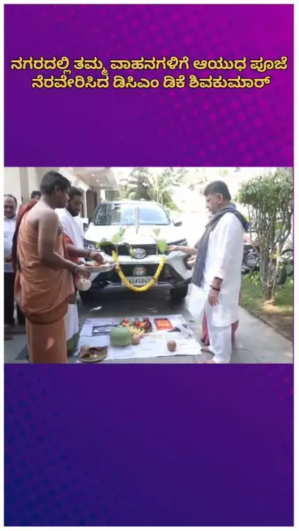 ರಾಜ್ಯಾದ್ಯಂತ ಆಯುಧ ಪೂಜೆ ಸಂಭ್ರಮ ಸಡಗರದಿಂದ ಕೂಡಿದ್ದು, ಪ್ರತಿಯೊಬ್ಬರು ತಮ್ಮ ಮನೆಯ ಆಯುಧ, ವಾಹನಗಳಿಗೆ ಪೂಜೆ ಸಲ್ಲಿಸುತ್ತಿದ್ದಾರೆ. ಇನ್ನು ಸದಾಶಿವನಗರದಲ್ಲಿ ಬುಧವಾರ ಮಧ್ಯಾಹ್ನ 12:30 ರ ಸುಮಾರಿಗೆ ಡಿಸಿಎಂ ಡಿಕೆ ಶಿವಕುಮಾರ್ ಅವರು ತಮ್ಮ ಸರ್ಕಾರಿ ವಾಹನಗಳು ಹಾಗೂ ತಮ್ಮ ವಾಹನಗಳಿಗೆ ಪೂಜೆ ಸಲ್ಲಿಸಿದರು. ನಂತರ ತಮ್ಮ ವಾಹನಗಳಲ್ಲೇ ಸರ್ಕಾರಿ ಕೆಲಸಗಳಿಗೆ ಹೊರಟರು.