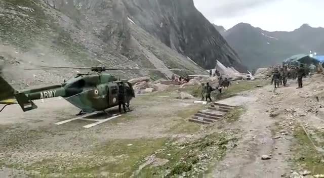 जम्मू कश्मीर,भारतीय सेना का निचले अमरनाथ गुफा स्थल पर बादल फटने से प्रभावित क्षेत्र में बचाव अभियान जारी है।