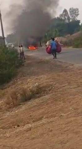 नशे में धुत होकर दो युवक ने बाइक पर लगाई आग बाइक हुई राख