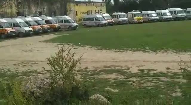 गोपीगंज पड़ाव पर अपनी मांगों को लेकर एम्बुलेंस कर्मी महाआंदोलन पर