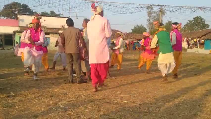 आदिवासी कलाकारों की परंपरिक शैला नृत्य संगम टोला