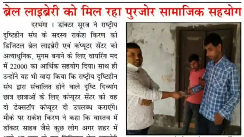 दरभंगा चिल्ड्रेन हॉस्पिटल के निर्देशक डॉ सुरज जी के द्वारा ब्रेल लाइब्रेरी को दिया गया सहयोग #DarbhangaChildrenHospital