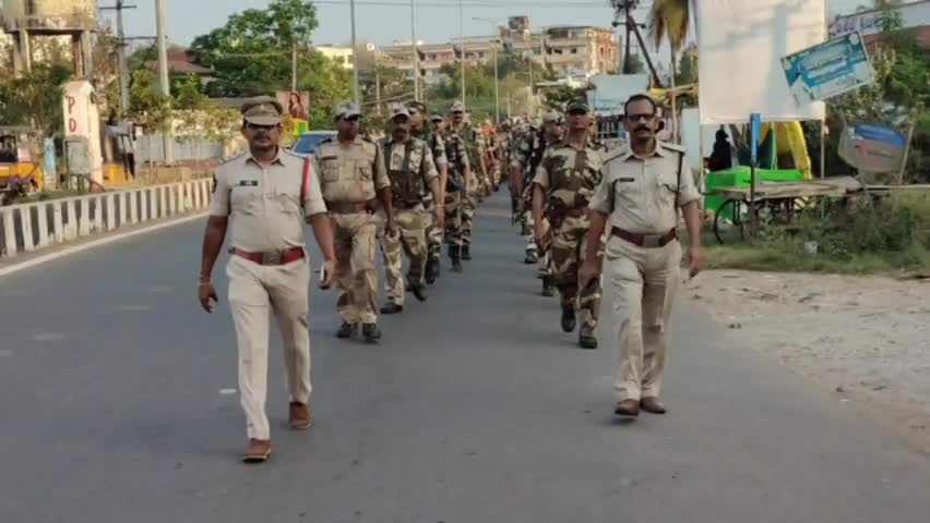 ఏలూరు జిల్లా ఎస్పీ మేరీ ప్రశాంతి ఆదేశాలతో ఏలూరు డీఎస్పీ శ్రీనివాసులు, ఏలూరు త్రీ టౌన్ ఇన్స్పెక్టర్ వి. వెంకటేశ్వరరావు, ఎస్ఐ ప్రసాద్, సిబ్బంది గురువారం సాయంత్రం ఏలూరు 3 టౌన్ పరిసర ప్రాంతాలలో సాయిద దళాలతో కవాతు నిర్వహించారు. ఈ సందర్బంగా త్రీ టౌన్ ఇన్స్పెక్టర్ వి. వెంకటేశ్వరరావు మాట్లాడుతూ రానున్న సార్వత్రిక ఎన్నికల్లో ప్రతి ఒక్కరూ స్వేచ్ఛగా ఓటు హక్కు వినియోగించుకోవాలన్నారు. ప్రజలు వారికి రాజ్యాంగం ద్వారా సంక్రమించిన ఓటును వినియోగించుకోవడానికి కావలసిన మౌలిక సదుపాయాలను పోలీస్ శాఖ అందిస్తుందని తెలిపారు.
